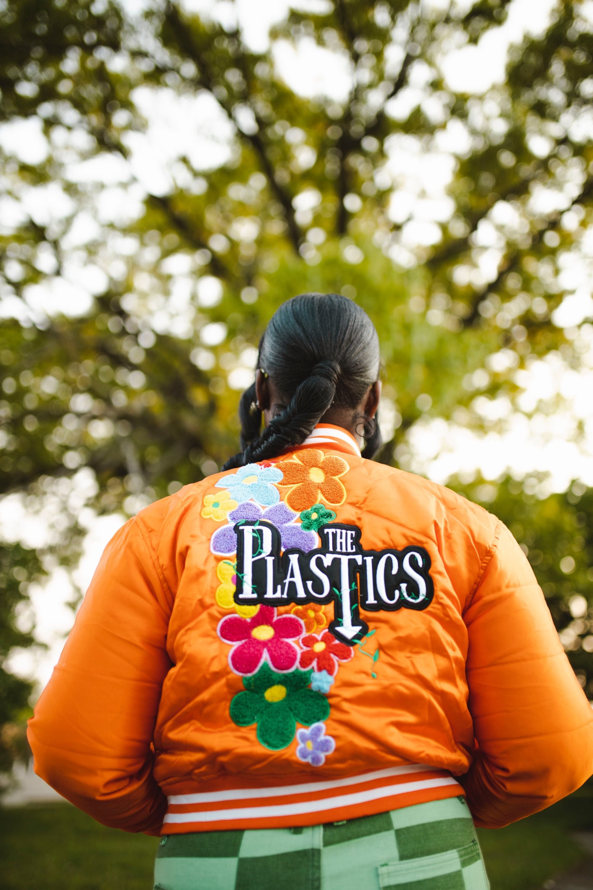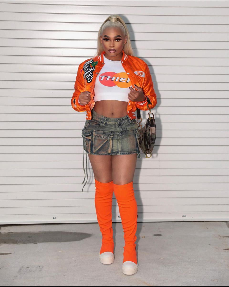 Modelo naranja con talla XL