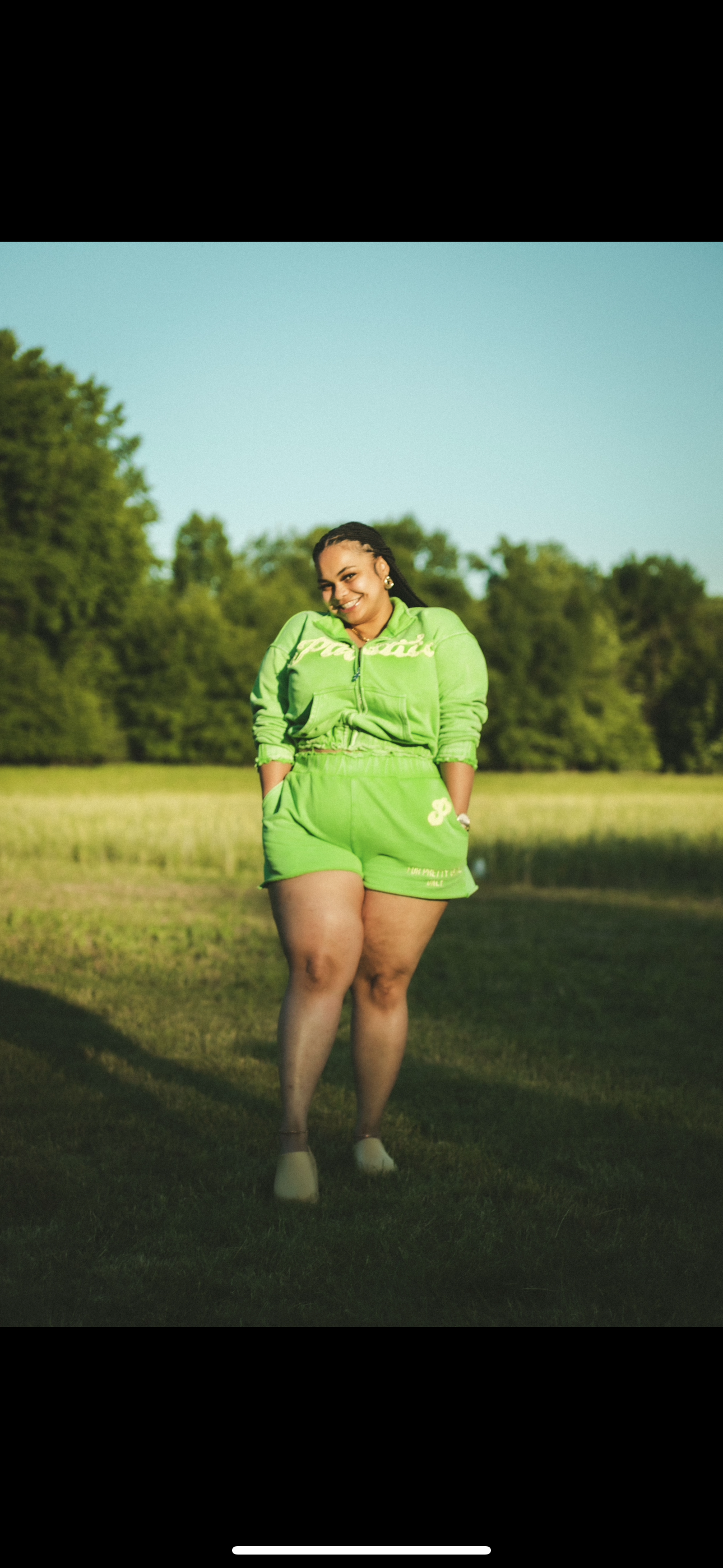 La modelo de color verde lleva la talla L