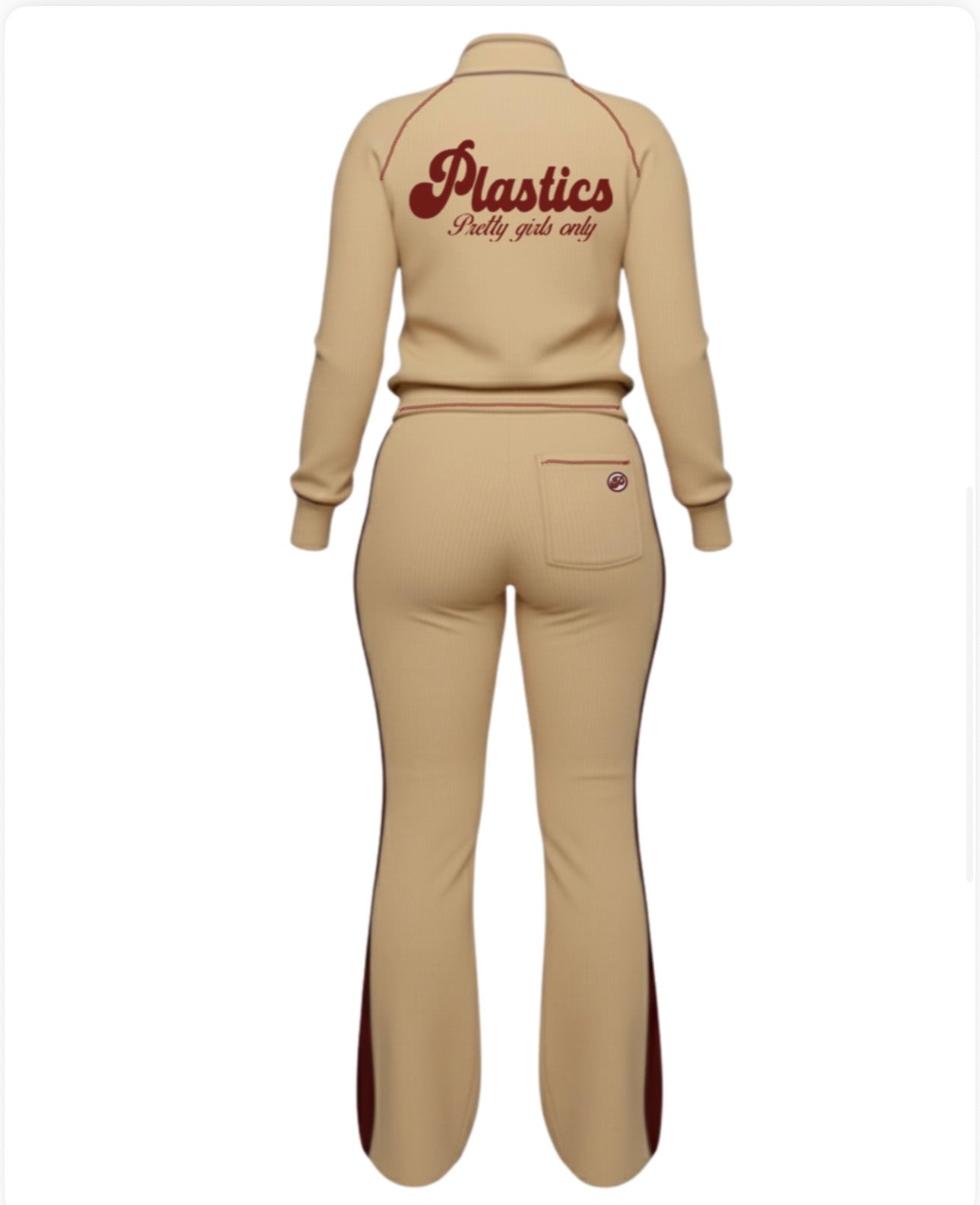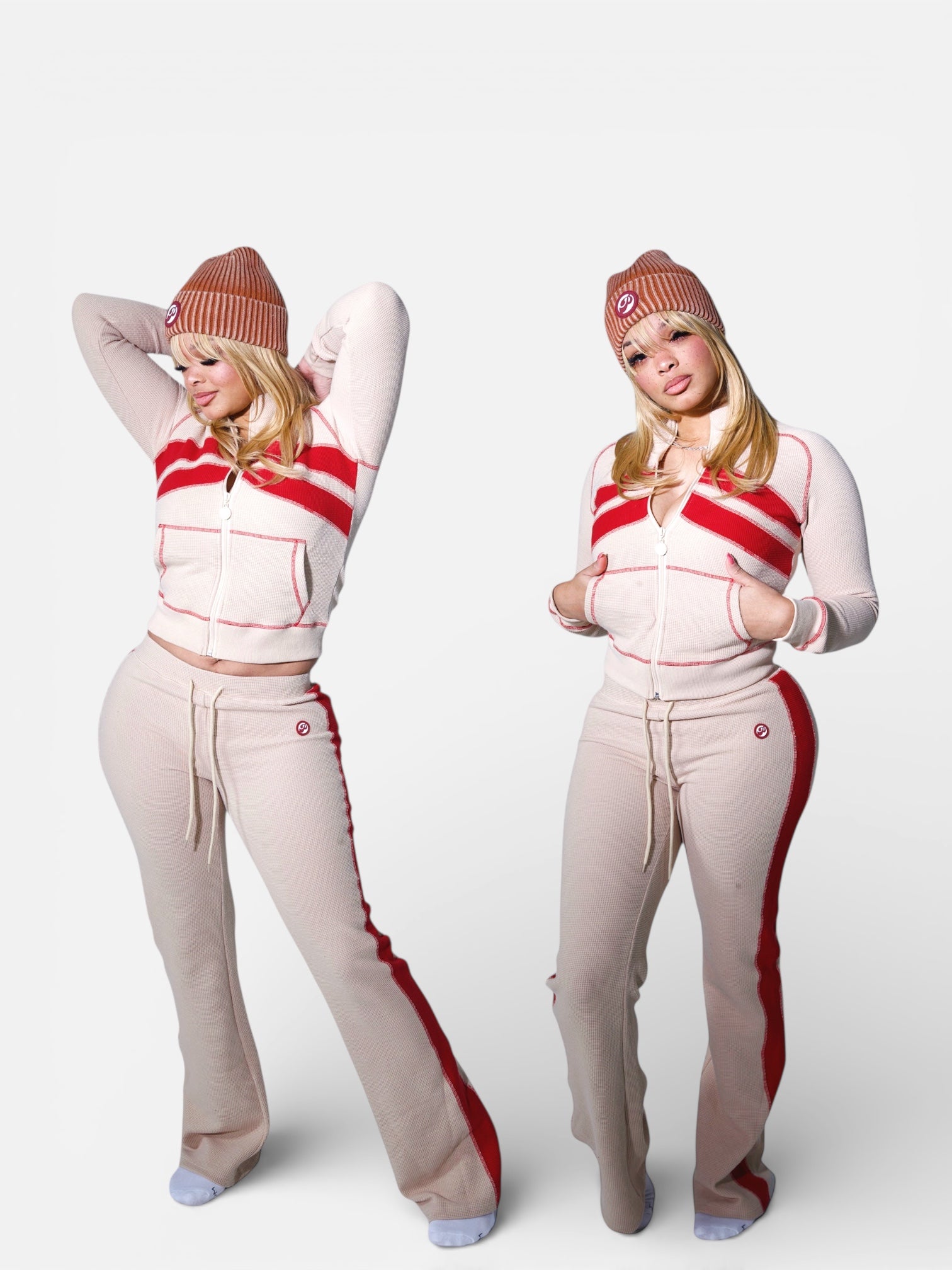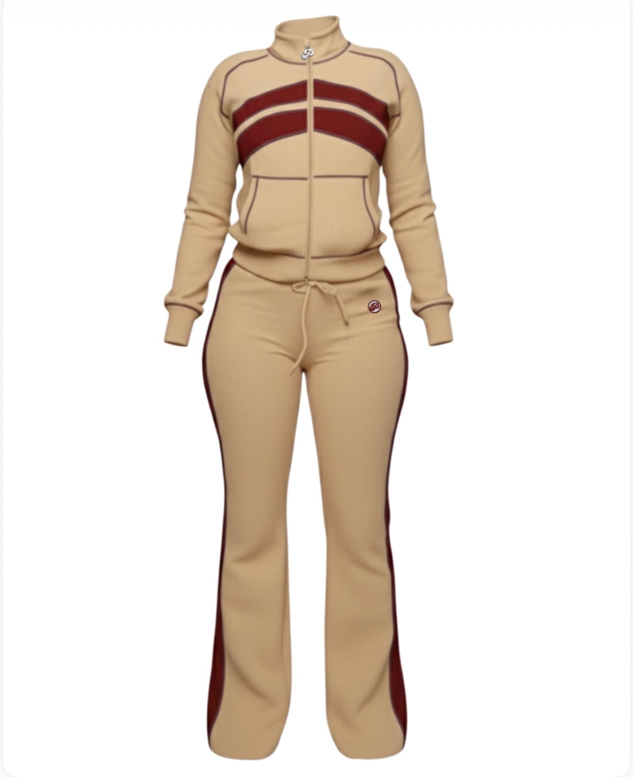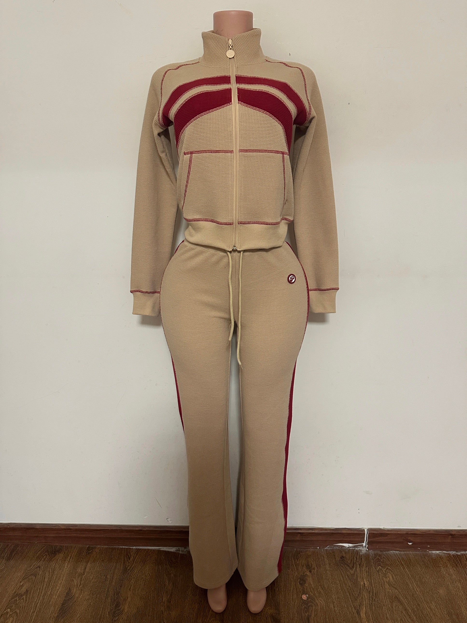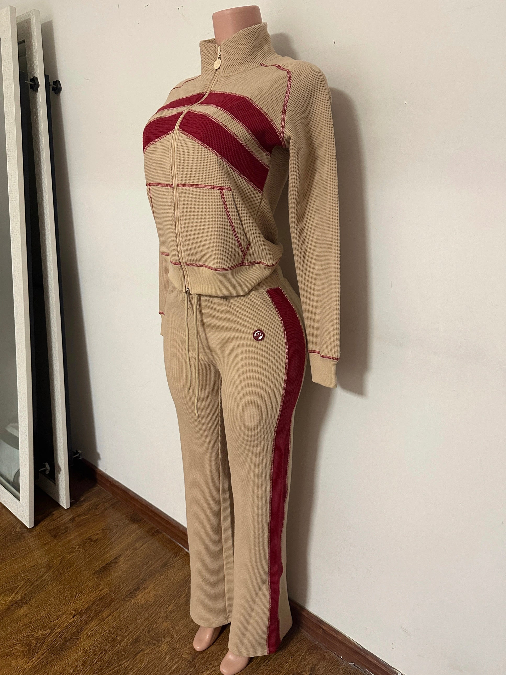• Matching Top & Bottom – Elevated color blocking in tan + burgundy