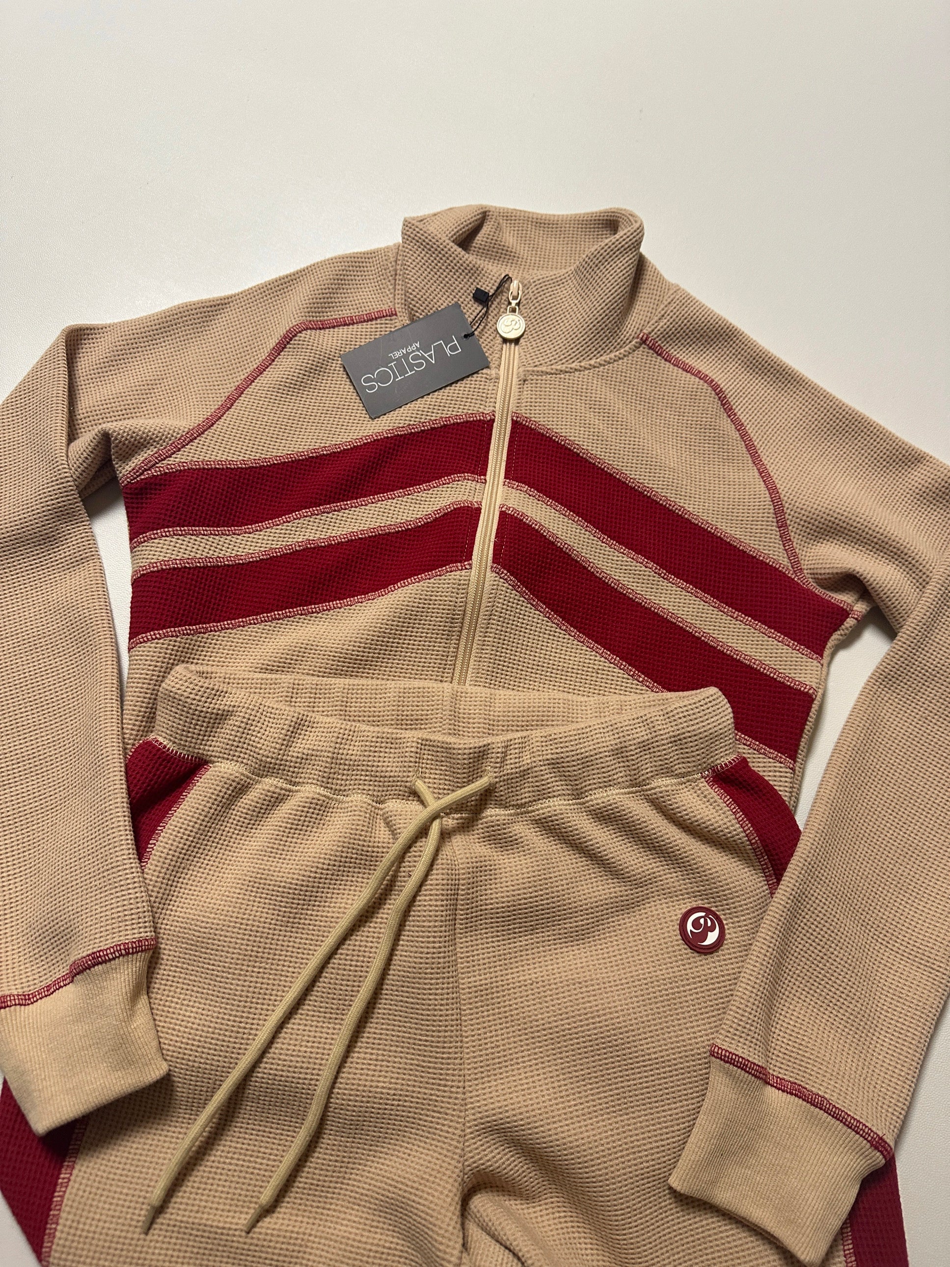 ✨ New Waffle Knit Set – Tan & Burgundy ✨
