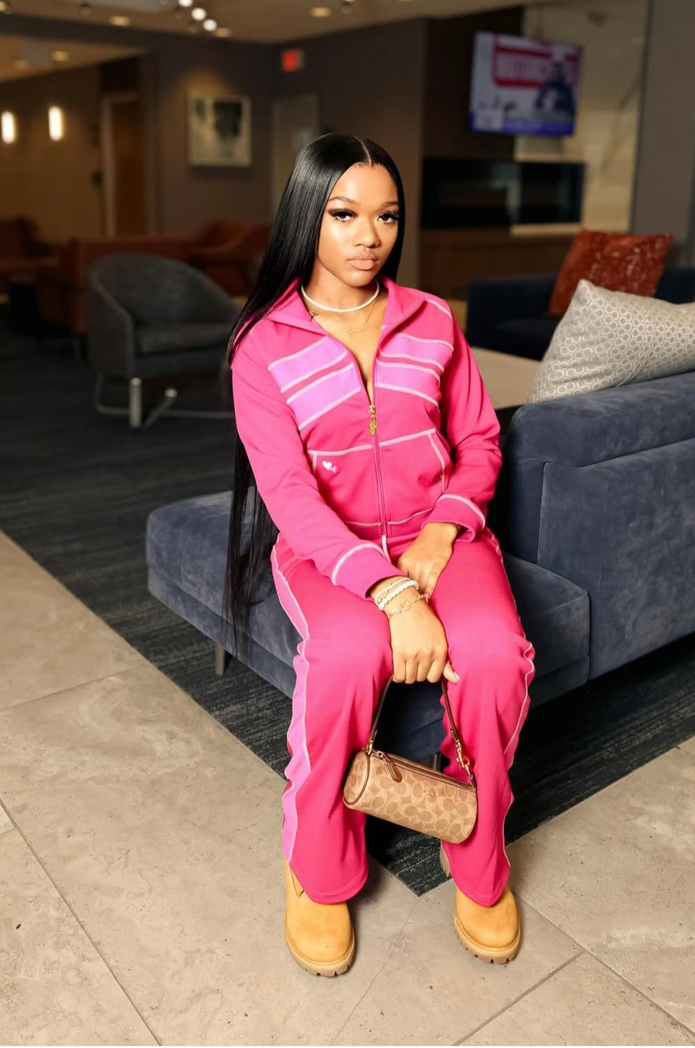 Cozy up in luxury and style with the P of Hearts Waffle Knit Jogger Set—your new go-to for cute & comfy vibes. Designed with tall girls in mind, this set features a relaxed yet flattering fit, so you can slay without the struggle of short sleeves or high-water joggers.